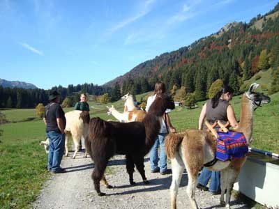 Diese ca. 2 Stündige Tour startet mit einer ausführlichen Einweisung in die Welt der Lamas. Die Teilnehmdenden lernen ihr eigenes Lama kennen und es leicht zu führen. Sie erfahren viel über diese interessanten Tiere, den Umgang mit ihnen, ihre Haltung, die Wollproduktion.